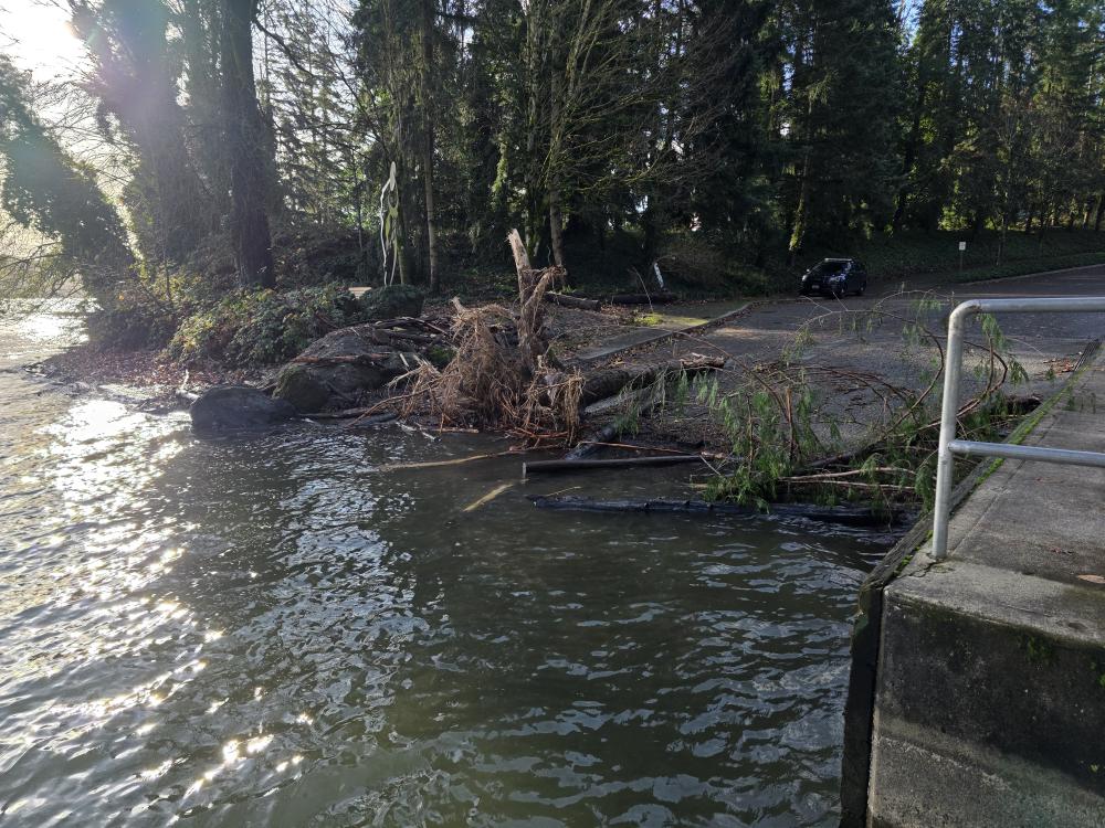 Hundreds of large trees, logs, and other debris are free floating in the lake. Boaters are urged to use extra caution while out on Lake Washington.