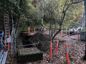Construction began this week at Sewer Pump Station 25, located in the 4200 block of East Mercer Way. Valley Electric and its subcontractors are starting with excavation alongside the generator vault and installation of temporary power infrastructure, including cables, conduits, a temporary automatic transfer switch, and a portable generator. These temporary systems will maintain continuous utility and backup power to the station while the emergency generator is replaced. Coordination with Puget Sound Energy is scheduled for next week to complete the temporary system. Generator replacement at Pump Station 25 is expected to be completed by Christmas, after which the project team will transition to Sewer Pump Station 23 to replace its generator.